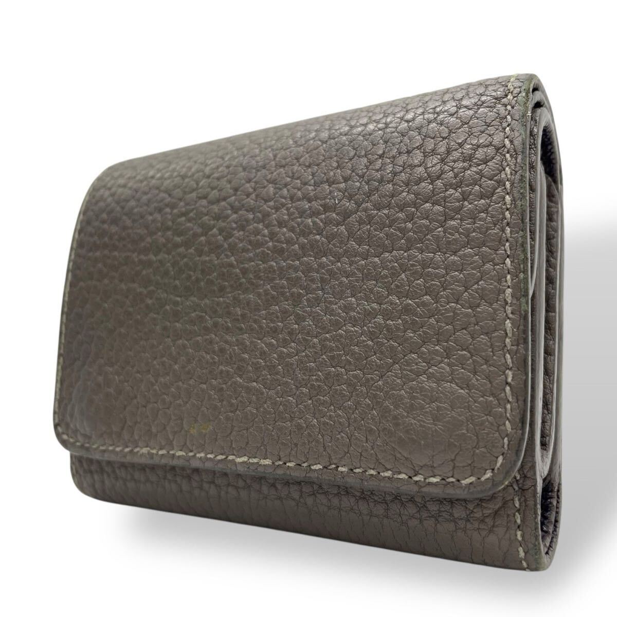 - 1円 【極美品】メゾンタクヤ 三つ折り財布 グレー パープル バイカラー レザー シルバー金具 コンパクトウォレット メンズ レディース M4
