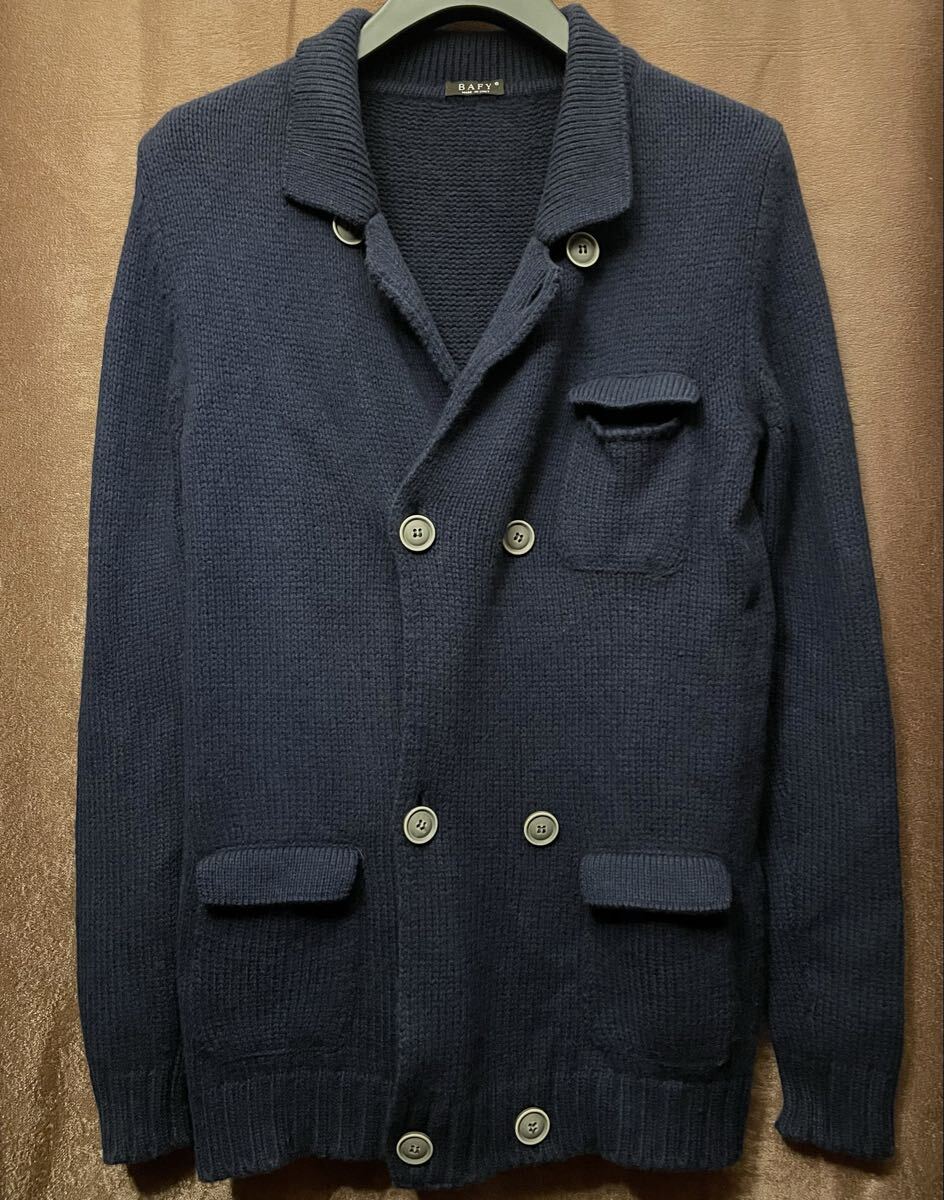 > MADE IN ITALY製 BAFY ダブルジャケット型 ニットカーディガン ネイビー 46サイズ バフィ イタリア製 カーディガン ダブルジャケット 紺