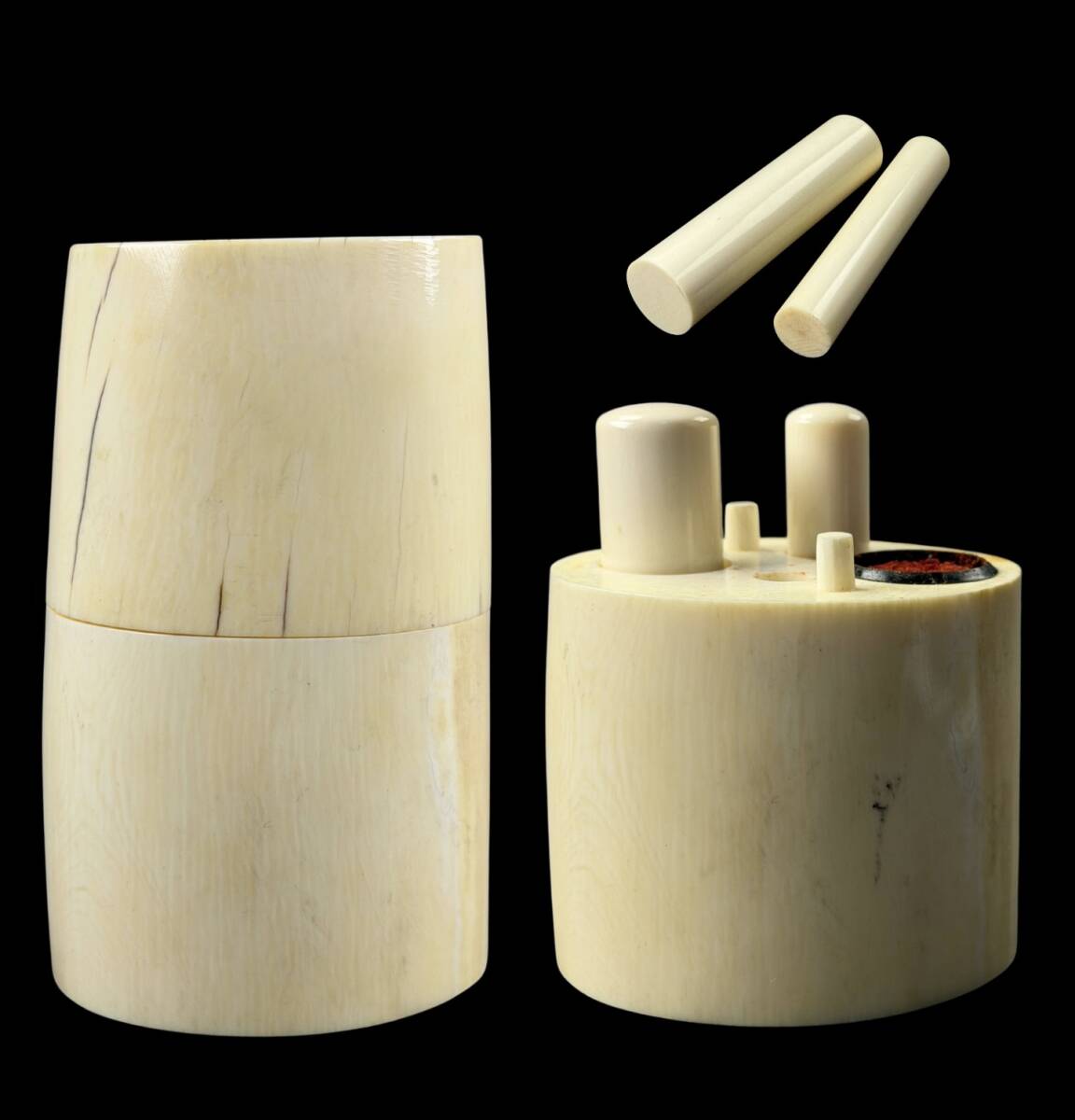 - 【偲】高級御印章 印鑑 印材 鯨歯風 天然素材 印章 はんこ 材料2点 印材箱1点 重約293g y-1048