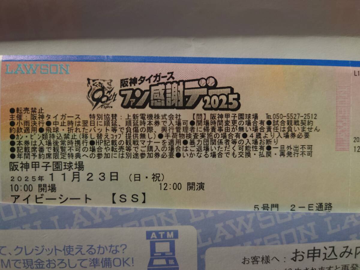 - 2025年阪神タイガースファン感謝デー入場券アイビーシート4連席