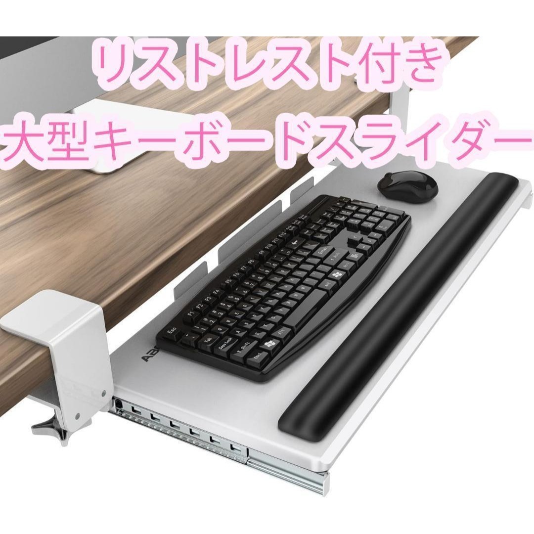 - 【頑丈なCクランプ】PCキーボードスライダー 後付け キーボードトレイ リストレスト付き デスク延長板 手首パッド ホワイト I16188