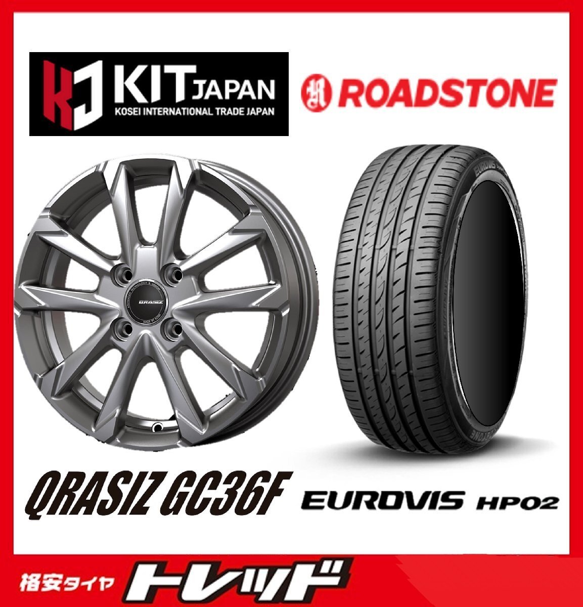 - 数量限定 2023年製)新横浜師岡店 新サマータイヤアルミ4本set クレイシズ GC36F 14インチ4.5J4穴100+45 ロードストーン HP02 155/65R14
