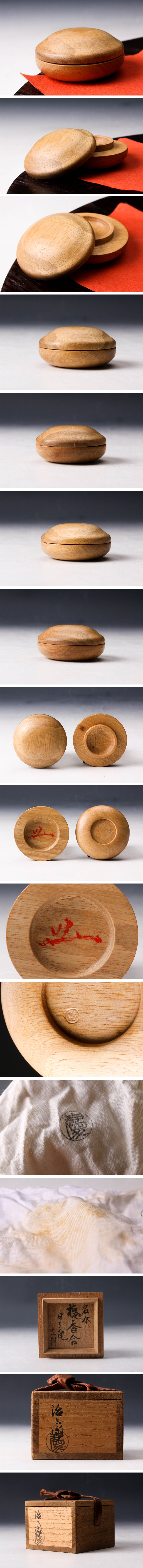 【佳香】二代 村瀬治兵衛 名木 槐(エンジュ)香合 花押 日々庵書付箱 共布 茶道具 本物保証