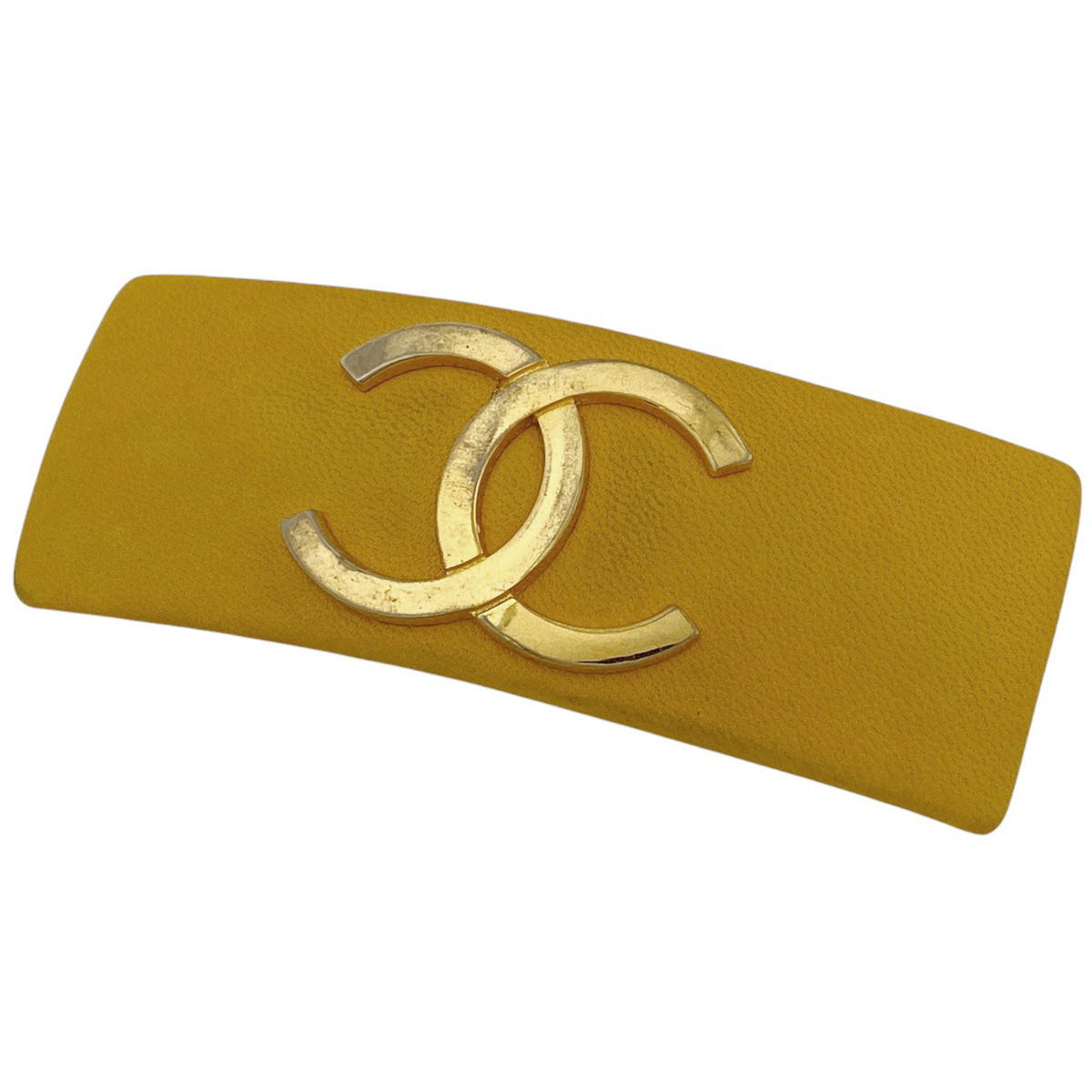 - シャネル CHANEL ココマーク バレッタ CCマーク 髪留め 髪飾り ヘアクリップ バレッタ レザー イエロー レディース 【中古】