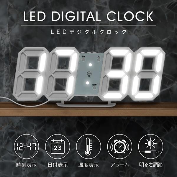 - LEDデジタルクロック 目覚まし時計 日付 時刻 温度 アラーム 壁掛け時計 インテリア時計 LED おしゃれ 送料無料 5M◇ LEDクロックW