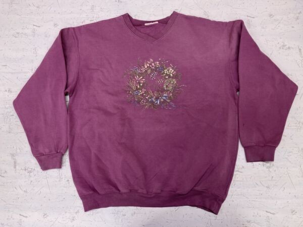 - スーベニア オールド アメカジ カントリー 90s 古着 Vネック スウェット トレーナー レディース ピンク
