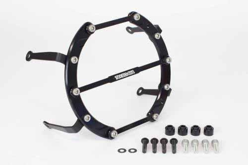 ヘッドライトガード:アルミ削り出しブラックアルマイト 中央には、切削によりSP武川ロゴが入っています。(パターンAの場合)