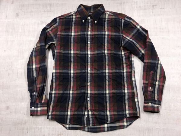 > Gymphlex ジムフレックス アメカジ フレンチワーク コットン100% 日本製 ボタンダウン 長袖 コットンネル チェック シャツ メンズ M 紺 赤