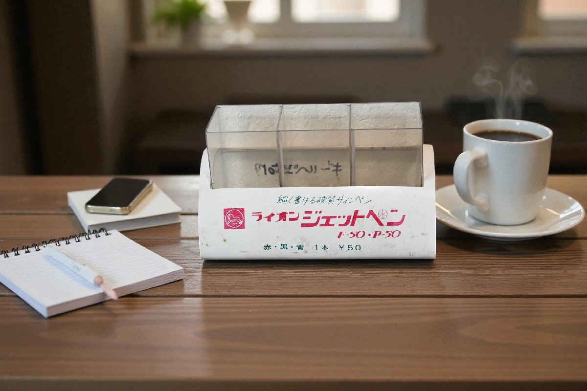 - ○LION ライオンジェットペン 三連のペン立て 可愛いロゴ 文具 什器 広告 レトロ 昭和 ヴィンテージ gplus広島 2510i