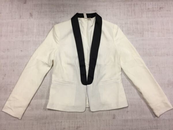 - フォーエバー21 FOREVER21 Exclusive モード クラシック ショールカラー ボタンレス ジャケット レディース 総裏地 S 白黒