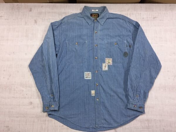 > FIRE AND ICE ファイアアンドアイス オールド レトロ 古着 ストライプ ファンシー パッチワーク 長袖ワークシャツ メンズ L 青
