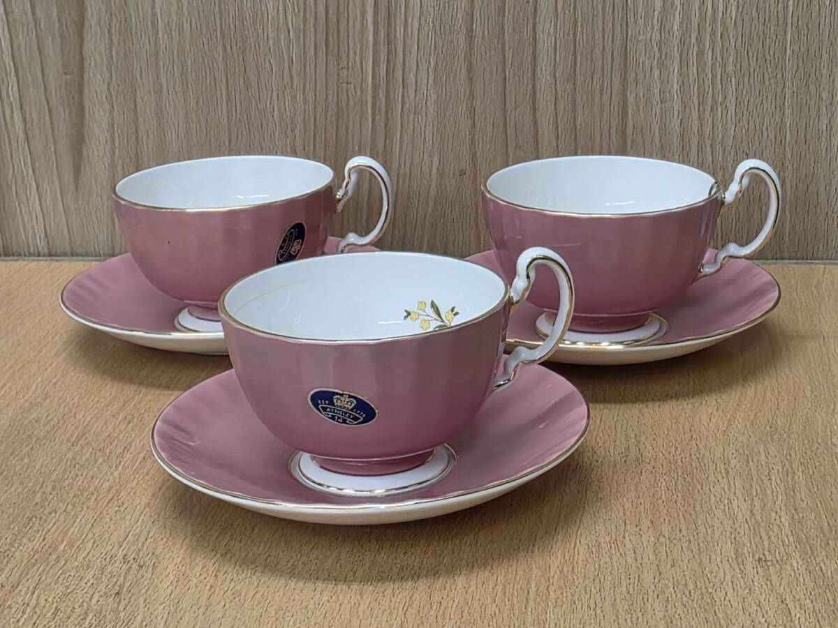 > Y H R71029 AYNSLEY エインズレイ カップ&ソーサー コテージガーデン ピンク 花柄 金彩 3客セット