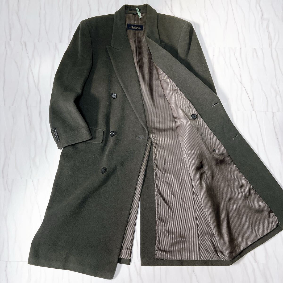 > 《希少カラー グリーン》PLANTA ダブルチェスターコート ロングコート ダブルブレスト アンゴラ ウール 緑 92A5 Lサイズ相当 大きいサイズ