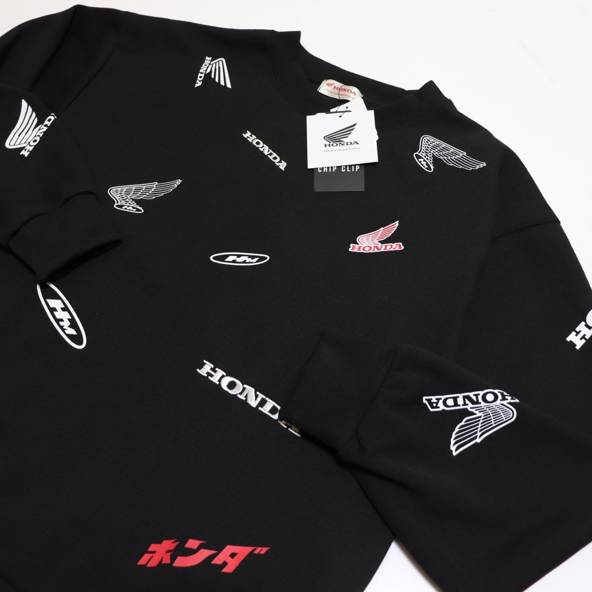 - ★ホンダ HONDA 新品 メンズ カジュアル 総柄 ロゴプリント スウェット トレーナー シャツ 黒 Lサイズ[Q520509NT-BLK-L]一 三 弐★QWER