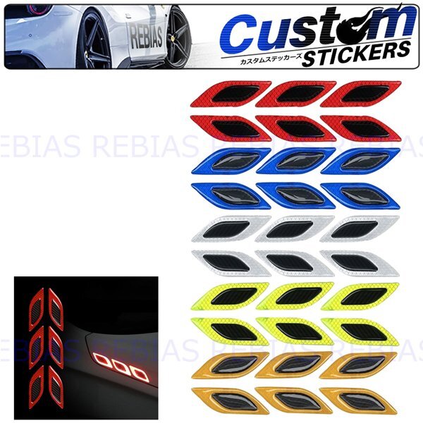 - 送料無料 【ホワイト】 ランバス ダクト ステッカー 6枚セット ダミー サイドダクト リフレクト 反射 エアロ カスタム
