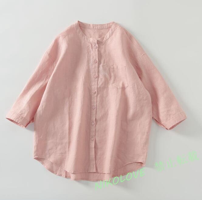 > ☆新品 ☆綿麻 シャツ レディース ブラウス リネン 7分袖 シャツブラウス 麻混 トップス 大人 ゆったり 大きいサイズ ピンク