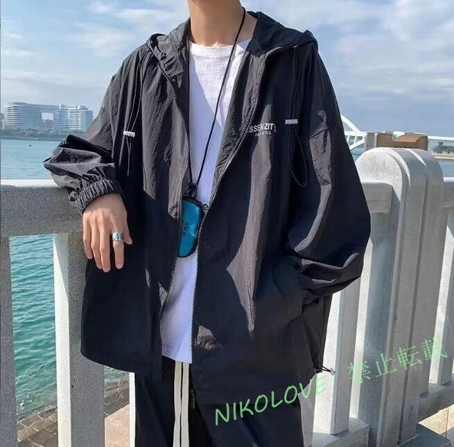 > ☆新品 メンズ アウター 日焼け止め服 トップス 薄手 無地 韓国風 フード付き 長袖 春秋夏 ゆったり カジュアル(M-2XL)