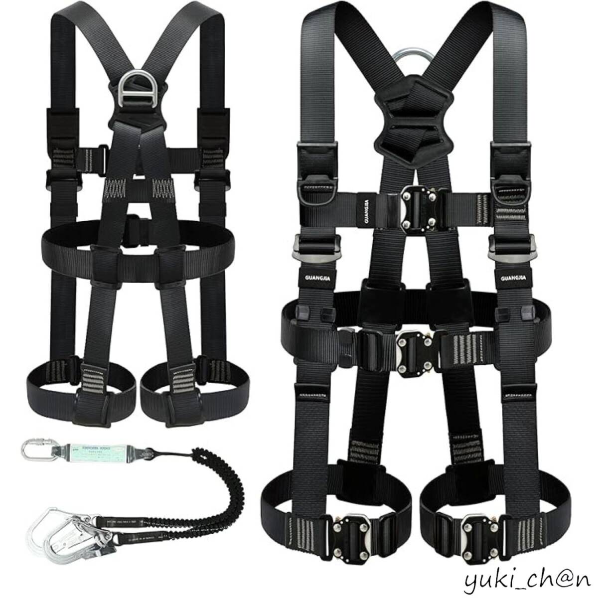 - 新規格 フルハーネス安全帯 墜落制止用器具 セット 脱着簡単 腹部と胸と脚ワンタッチバックル ランヤード付 2丁掛 落下防止