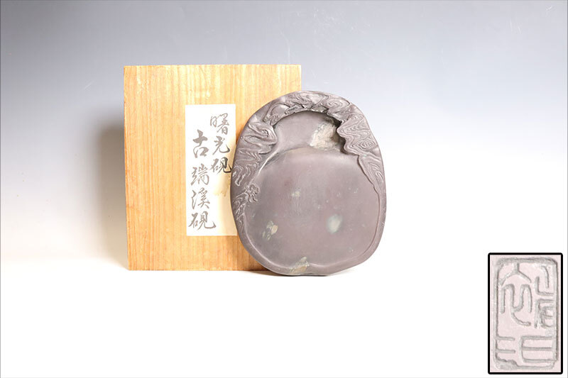 - 中国美術 古端渓硯 曙光硯 在銘 木箱附(H555)
