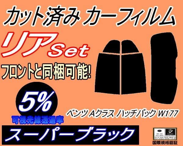 - カーフィルム スーパーブラック カット済み リアセット ベンツ Aクラス ハッチバック W177 (s) スモーク ガラスフィルム 177084 177012