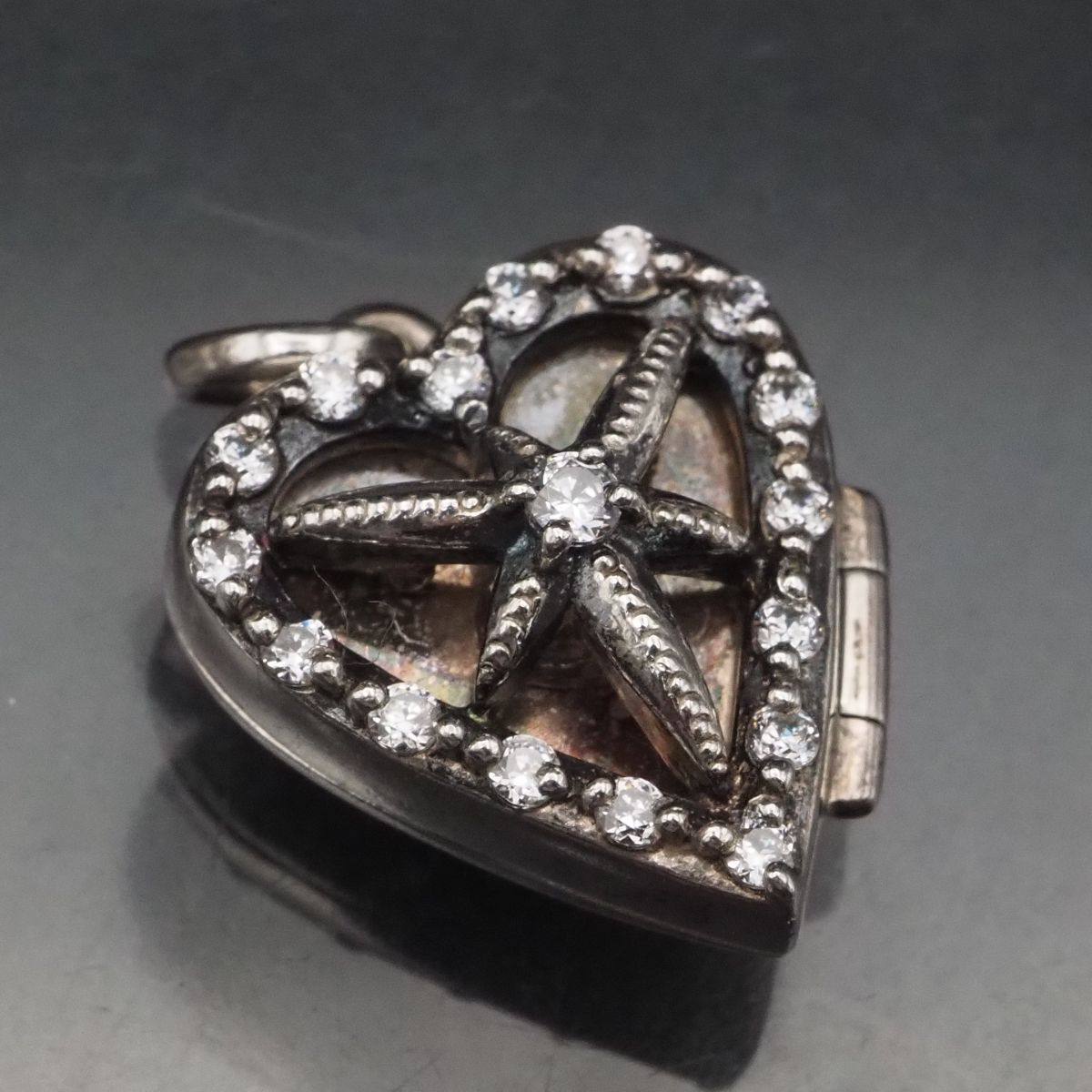 - H553 ダイヤモンド風 2008 X'mas刻印 ペンダント トップ ロケット ハート ラインストーン メッセージ デザイン シルバー チャーム ヘッド