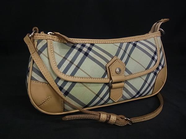 - 1円 BURBERRY バーバリーブルーレーベル キャンバス×レザー チェック柄 クロスボディ ショルダーバッグ 斜め掛け グリーン系 FP8078