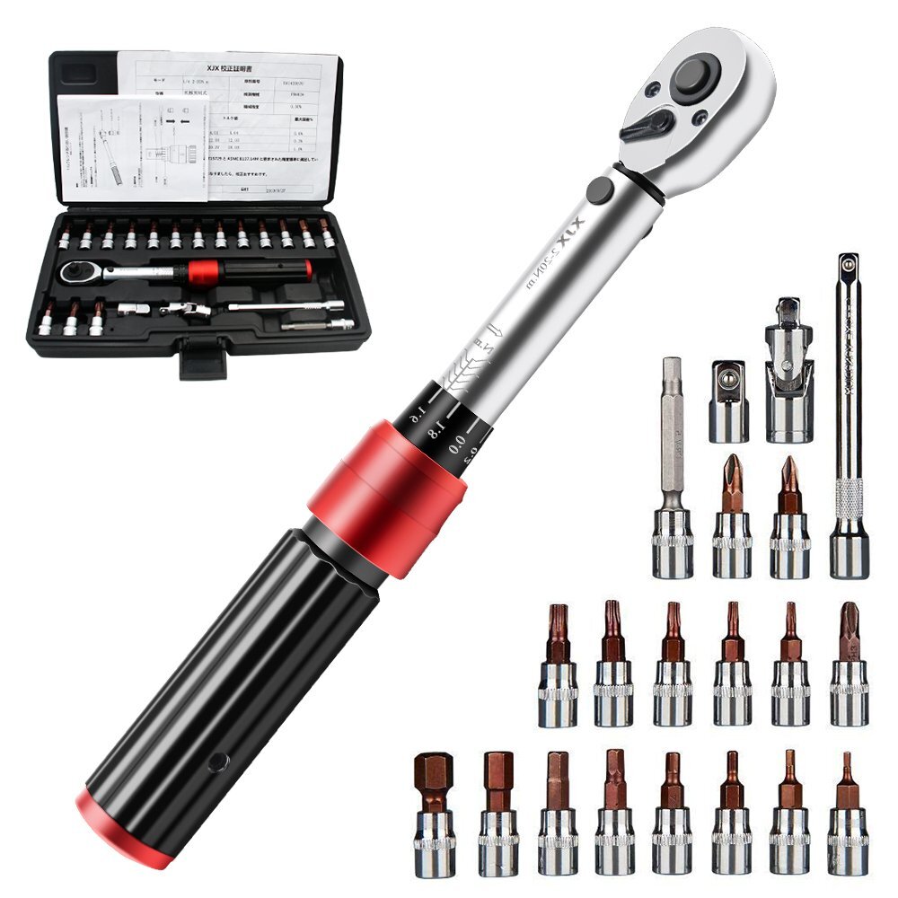 - 即納!改良版 プレセット型 トルクレンチ 6.35mm(1/4インチ) 3/8変換ソケット付 2-20N.m ビット16個 90枚ギア 両回転可能 送料無料 一年保証