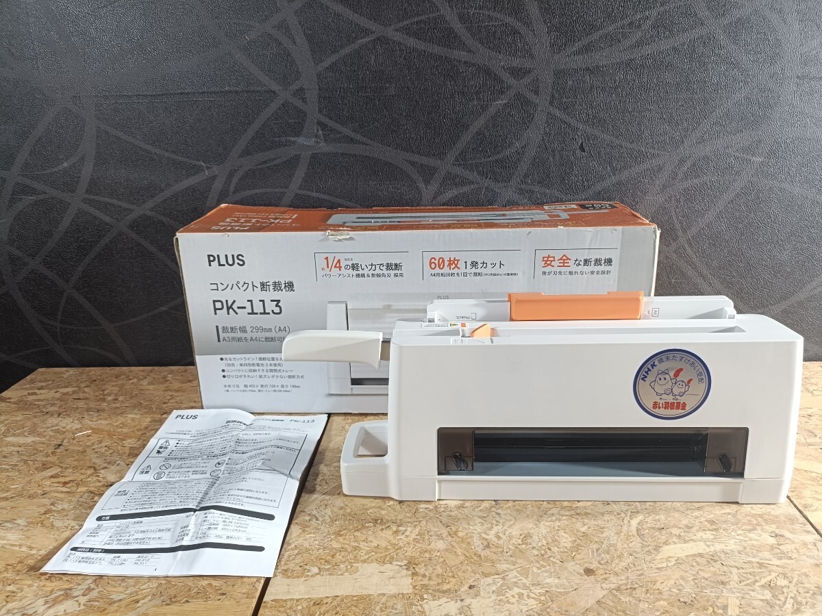 - (UJ149)PLUS コンパクト断裁機 PK-113 裁断幅299mm(A4) オフィス機器 パワーアシスト 光るカットライン プラス 現状品