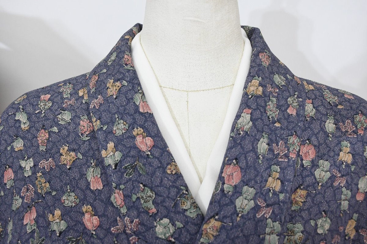 - 小紋 着物 袷 ちりめん 源氏 舞 人物文 正絹 身丈159cm 裄丈64.5cm ★ kb-7547 桜庭呉服店