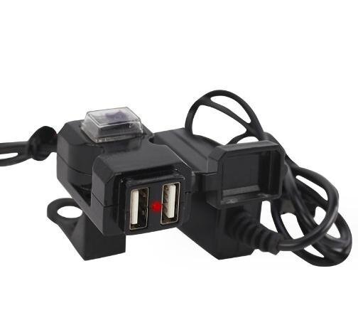 - バイク用 USB電源 2ポート 防水 ハンドル ミラー 取り付け スマホ 携帯 充電 給電 バッテリー リレー 接続
