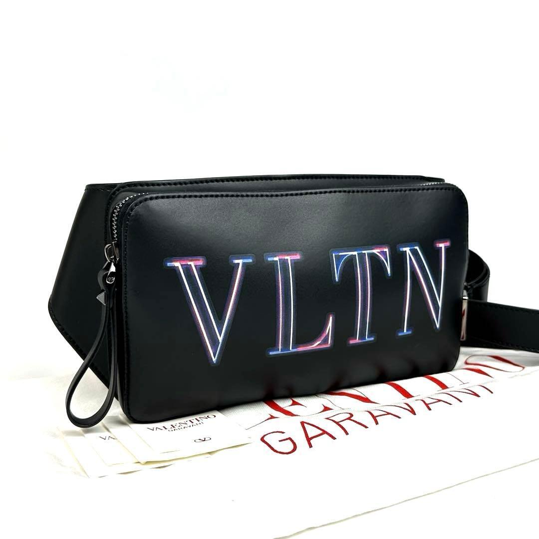 > 【極美品】VALENTINO GARAVANI ヴァレンティノ ウエストバッグ VLTN ロゴ スタッズ ボディバッグ レザー 黒 ブラック フォーマル 男女兼用