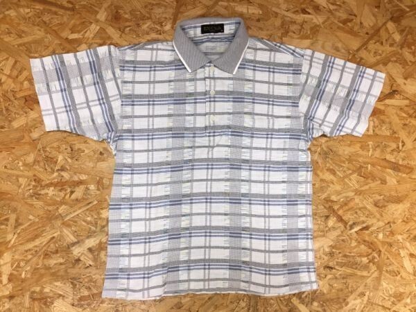 > EX-Club イーエクスクラブ レナウン レトロ スポーツ 爽やか チェック 半袖ポロシャツ メンズ コットン100% M ライトグレー