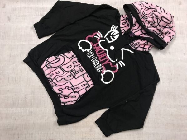 > BT MAINTAIN KEEP 平成ギャル GAL 耳付き Y2K くま耳 ネコ耳 ボアフリース×スウェット プルオーバー パーカー レディース 切替 L 黒