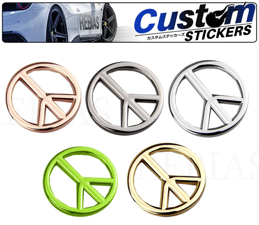 - 送料無料 ピースマーク エンブレム 【シルバー】 ステッカー 平和 幸福 車 カー用品 車 エンブレム