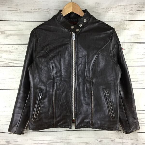 > 1960~70s?ビンテージTALONジップ 本革レザーブルゾン/ライダースジャケット サイズ14/S相当 茶色 ダークブラウン ※机1