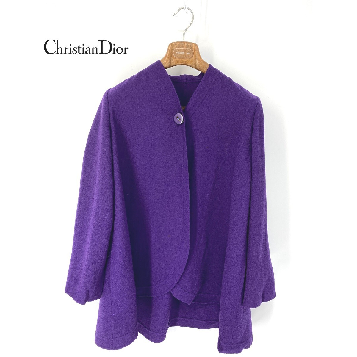 - A5982/春夏 裏地無し ChristianDior クリスチャンディオール ウール ポンチョ風 ケープ風 ハーフ ノーカラー コート 9 紫/レディース