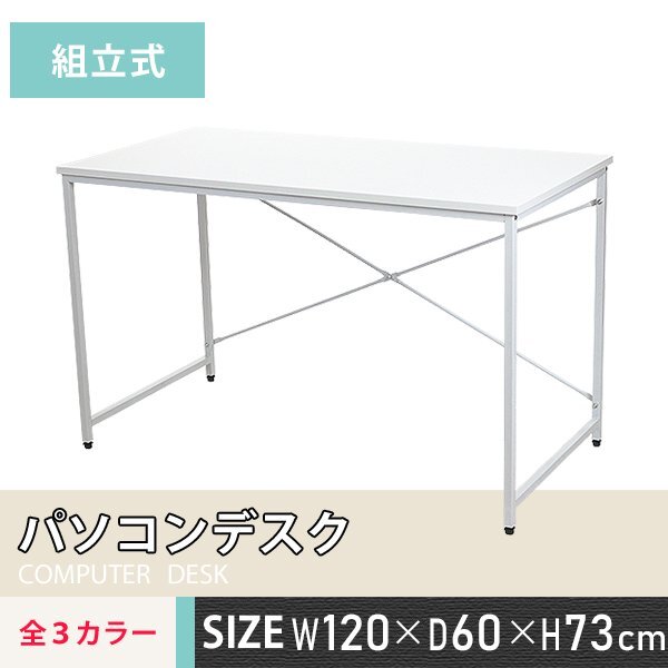 - 送料無料 デスク パソコンデスク ホワイト ワークデスク シンプルデスク 幅約120cmx奥行約60cmx高さ約73cm アジャスター 省スペース