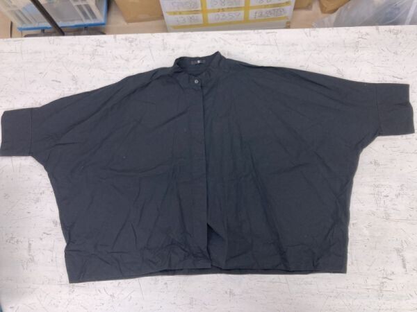 - ユニクロ UNIQLO +J ジルサンダー JIL SANDER コラボ レトロ モード ノーカラー ビッグシルエット 長袖シャツ ブラウス レディース M 黒