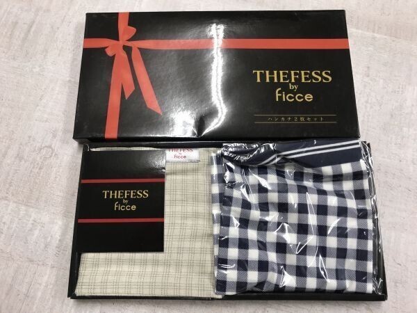 - 新品 箱入り THEFESS by ficce フィッチェ ドン小西 チェック ハンカチ 2枚セット ギフト メンズ ベージュ 紺