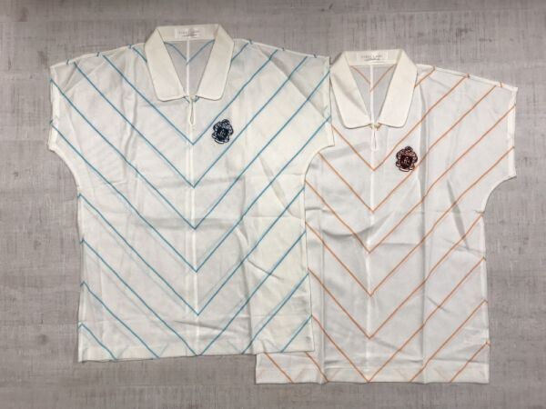 > ファーストレディー FIRST LADY レトロ 斜めストライプ エンブレム刺繍 メッシュ シアー トップス 2点セット レディース コットン100% L 白