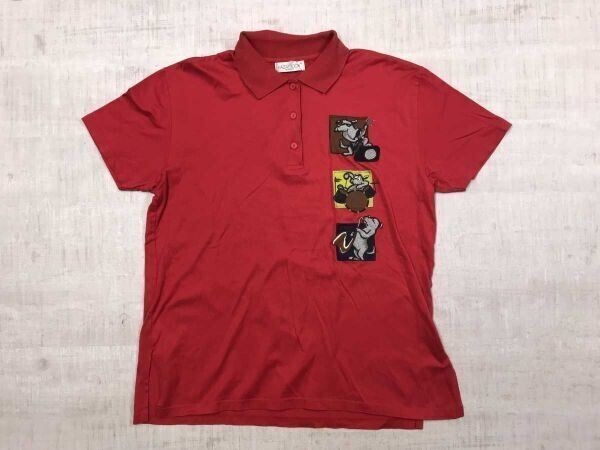 > カザミドリ ナイガイ KAZAMIDORI by NAIGAI レトロ かわいい 犬 キャラクター 刺繍 半袖 ポロシャツ レディース コットン100% M 赤