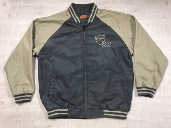 > カラーズ COLOURS JEANS オールド レトロ ストリート 古着 バイカラー スタジャン バーシティー ジャケット メンズ 総裏地 M 生成り/グレー