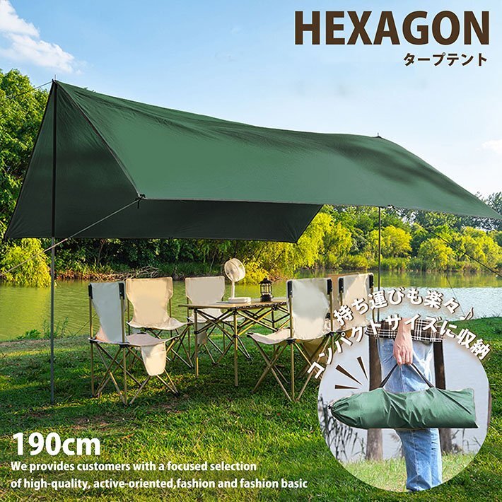 > テント タープテント ヘキサタープ 軽量 キャンプ アウトドア レジャー 海水浴 日よけ 7987405 グリーン 新品 1円 スタート