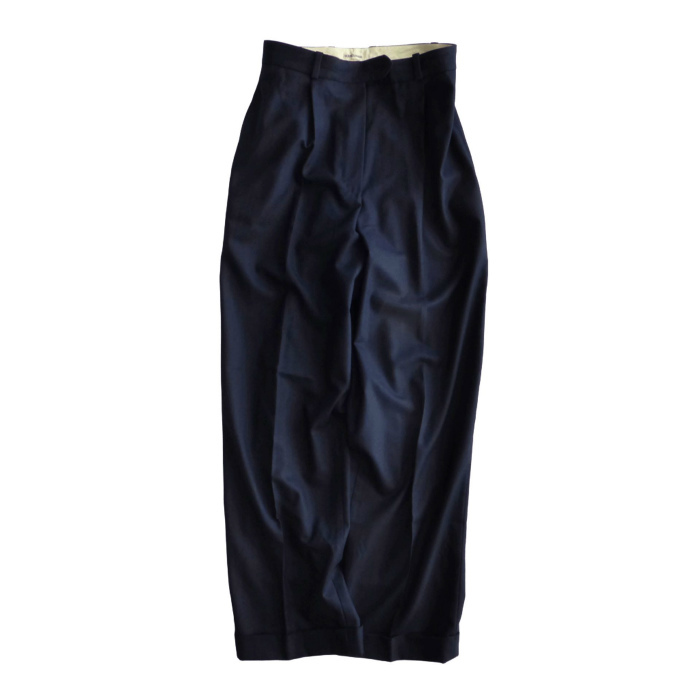 - エルメス (HERMES) ウール スラックス タック パンツ ヘリンボーン 36 ネイビー ウェア マルジェラ期 (中古)