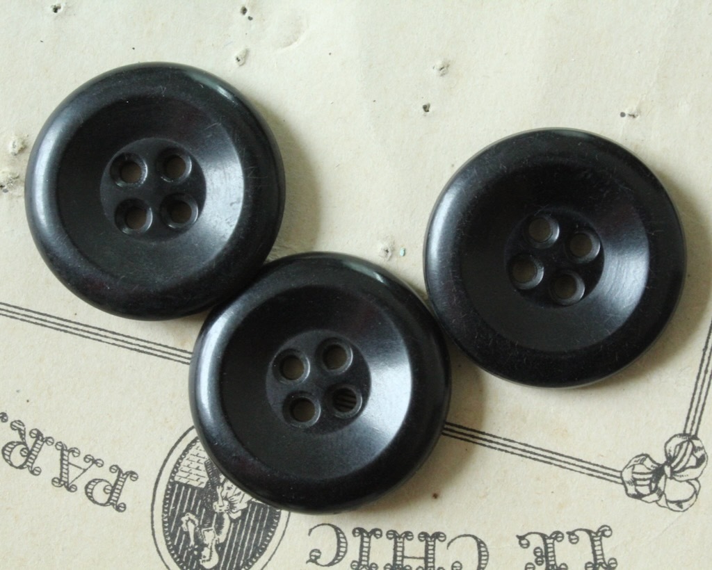 - 即決 ベジタブルアイボリーボタン 3個 φ27mm 厚5mm ブラック 黒 4穴 リメイク パーツ 材料 素材 フランス輸入 ヴィンテージ