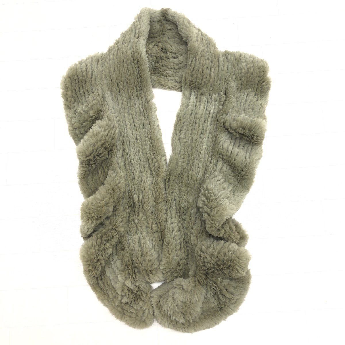 - ●Real Rabbit Fur Cape ふわふわ ラビットファー フリルケープ オリーブ マフラー ショール ティペット リアルファー 毛皮 レディース