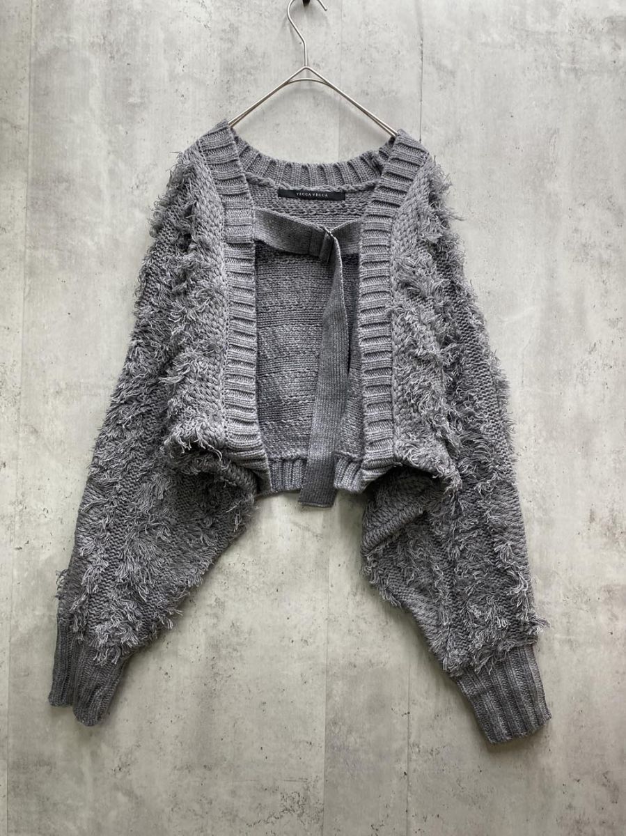 - YECCA VECCA イェッカヴェッカ 7C37L2D0200 フリンジ ベルテッド ニット ボレロ カーディガン sizeF/グレー ◆■