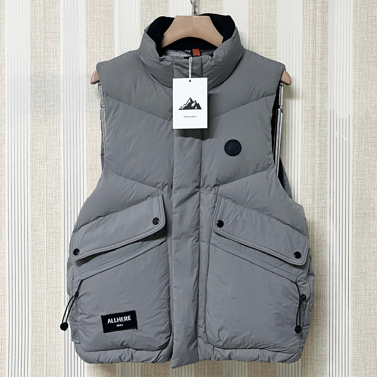 - ダウンベスト イタリア製造 ダックダウン90% 防寒対策 ふわふわ ソフト 無地 シンプル 袖なし アウター ダウンジャケット 冬服 SIZE:2XL