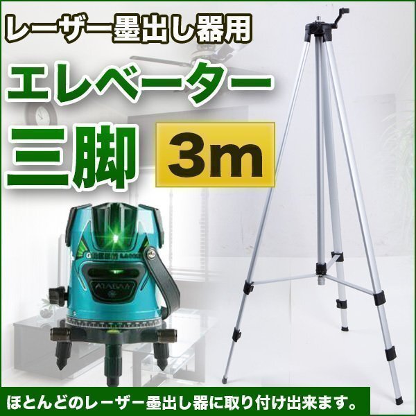 > レーザー 墨出し器 三脚 3m エレベーター三脚 ケース付き アルミ 収納袋付き 墨出し器三脚 軽量 測量機器三脚 建築 測量