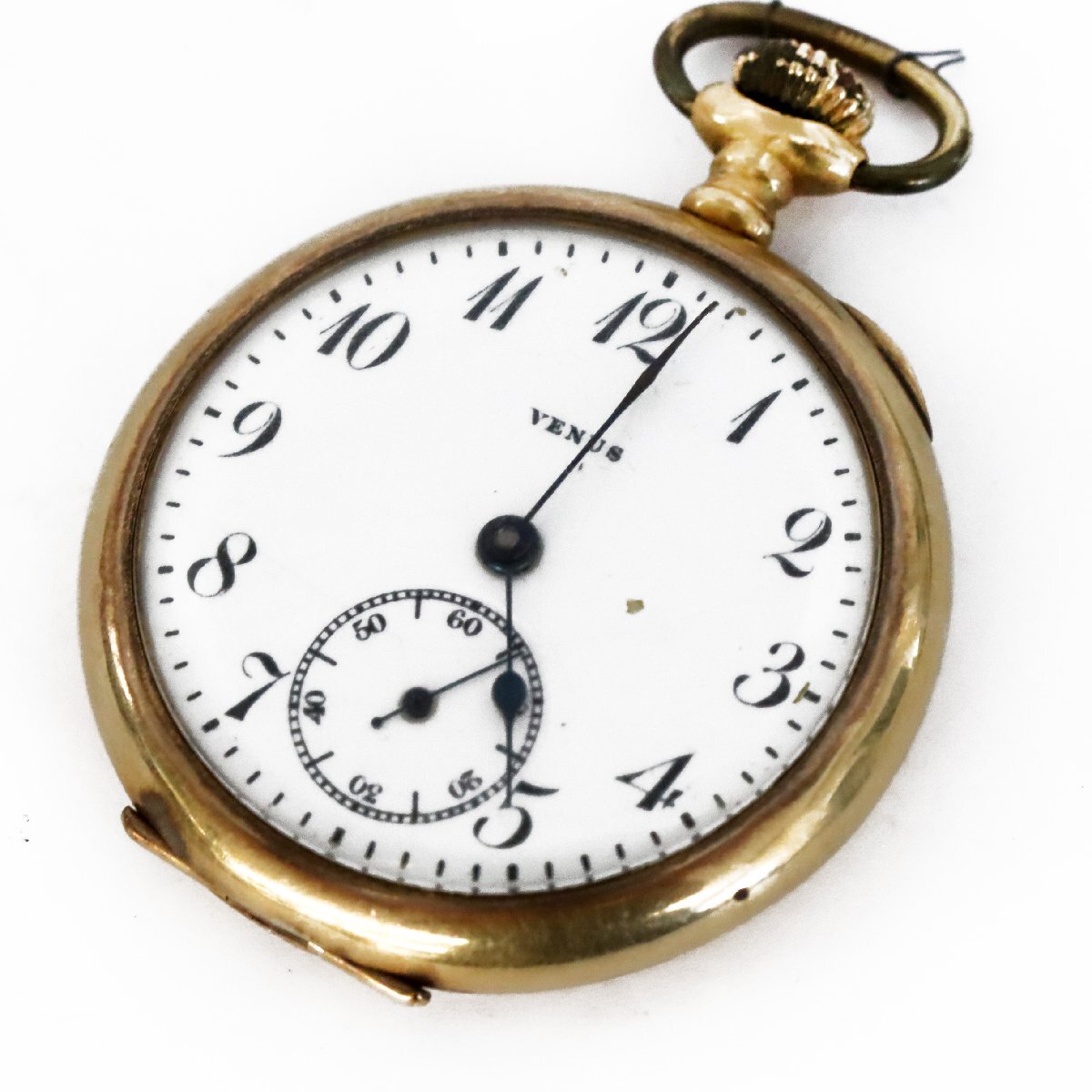 - ジャンク時計☆VENUS ヴィーナス 懐中時計 K18刻印有り X線測定済 総重量48.4g 手巻き稼働品 OH歴不明◆おたからや【x-JW04733】